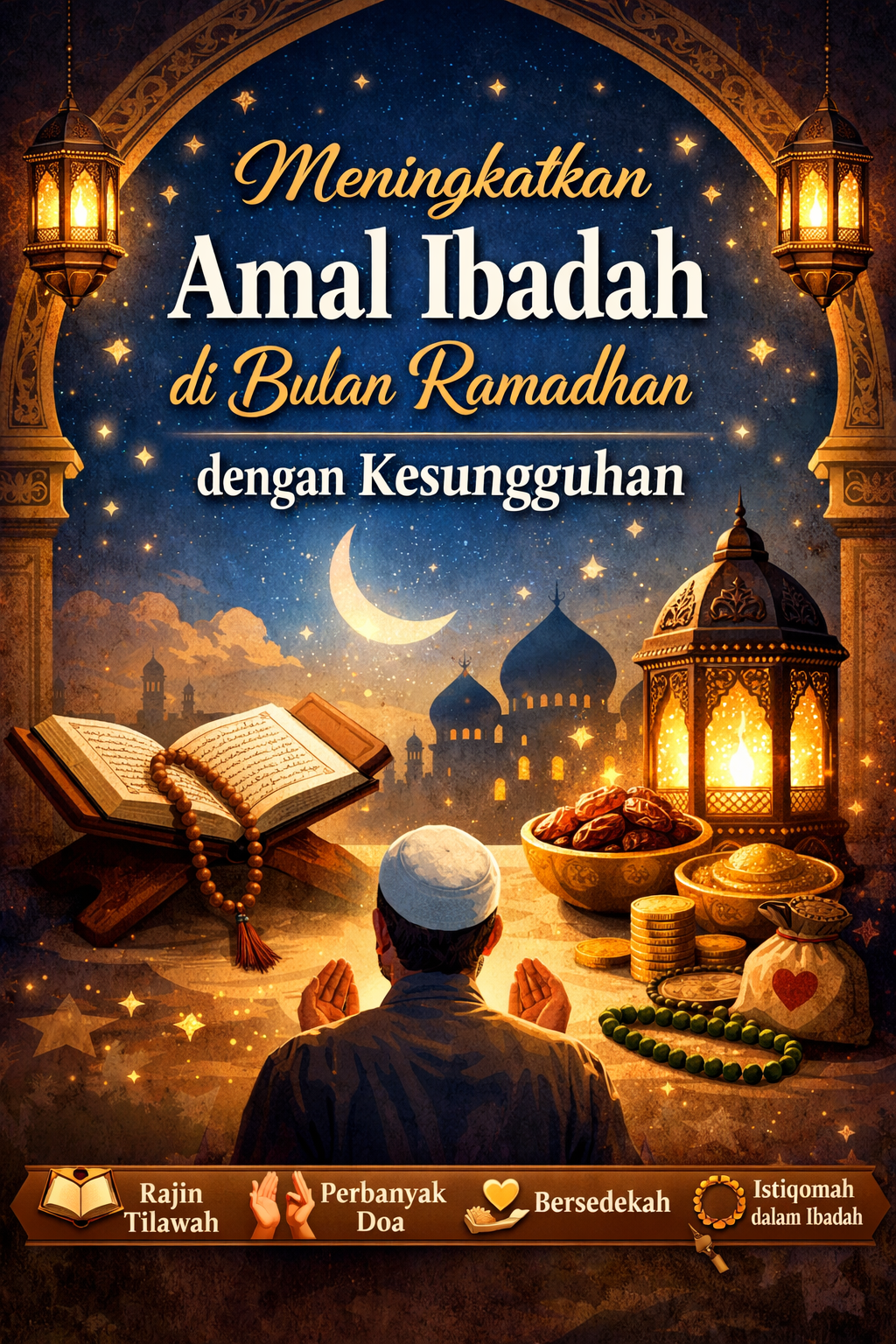 Kesungguhan dalam beribadah selama Ramadhan berawal dari niat yang tulus. Ketika niat sudah lurus, ibadah yang dilakukan akan terasa lebih ringan dan penuh makna. Puasa mengajarkan kita untuk menahan hawa nafsu, menjaga lisan, serta mengendalikan emosi. Namun, meningkatkan amal ibadah di bulan Ramadhan tidak hanya terbatas pada puasa wajib. Shalat tepat waktu, memperbanyak shalat sunnah, membaca Al-Qur’an, berdzikir, dan berdoa adalah bentuk-bentuk ibadah yang bisa dilakukan secara konsisten.